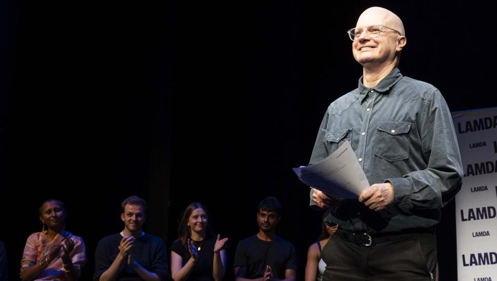 This year’s event included several special guests: helping LAMDA Principal Professor Mark O’Thomas with the difficult task of selecting prize-winners were LAMDA Alumna and actor/writer Rosa Hesmondhalgh and London based poet and activist Rick Dove. Rosa shared how her involvement with Poetry Night as a Student back in 2015 had contributed to her evolution as a creative and Rick shared some of his own work, including Here Be Dragons; a piece with particular resonance for those affected by Alzheimer’s cruel machinations.